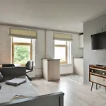 2个人可以住在28平米的里加Quiet Loft With Free Parking公寓.它坐落于Latgales priekšpilsēta区,距离Bastejkalns Park不远,走路只需20分钟. 这套1间卧室的公寓在厨房里有电热水壶,冰箱和厨具.